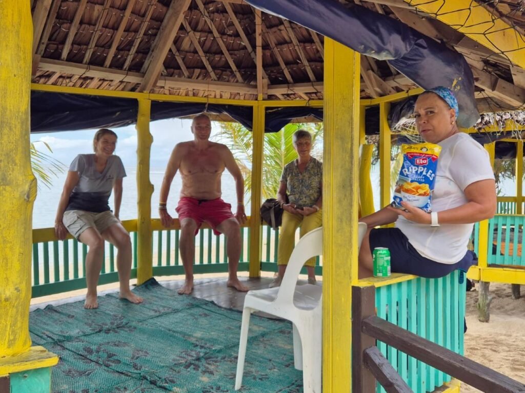 Finalmente llegamos, pero tarde a nuestro destino final, la playa de Lalomanu una de las mejores playas de arena blanca de la isla. En ella en principio debíamos ser recibidos con una bebida fresca de coco, poder descansar en una cabaña de techo de paja y disfrutar de un buffet típico cocinado en un horno típico umu, pero lo cierto es que no quedaba ni la bebida de coco, ni lugar en las cabañas donde poner nuestras cosas, ni comida ya que los pasajeros de los autobuses que llegaron antes que nosotros habían acabado con todo. Fue un desastre de organización, y reclamamos a los asistentes de excursiones del barco que finalmente recibieron órdenes de que pagásemos por otras cabañas que eran de otro bar y por bebida y comida en ese mismo bar que se nos retornaría el importe.