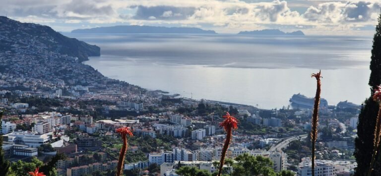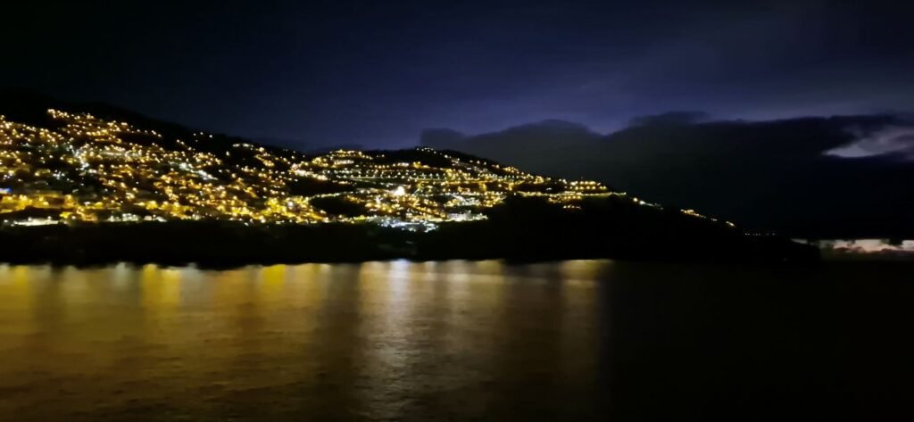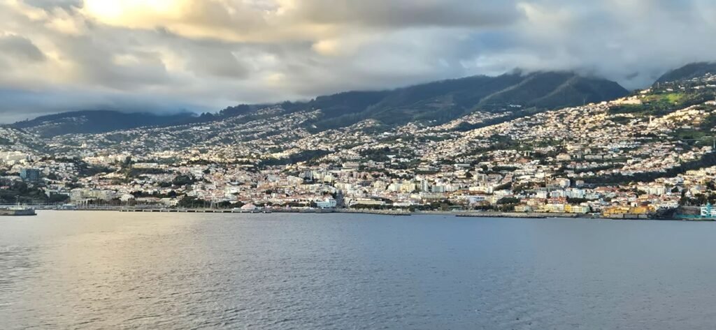 La primera escala la realizamos en Funchal capital de las islas Madeira, archipiélago portugués situado en el océano Atlántico, conocido por su clima suave todo el año. La isla principal destaca por sus paisajes verdes, montañas escarpadas y costas volcánicas. Es un destino ideal para los amantes de la naturaleza y el senderismo. Tiene una extensión de unos 740,7 km² y una población: alrededor de 260 000 residentes en 2024.