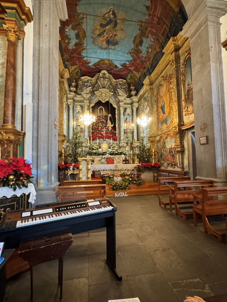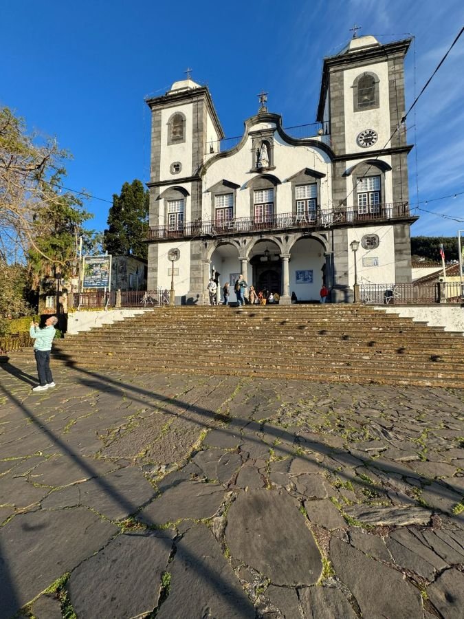 Tras la salida nos dirigimos en primer lugar hacia la zona más alta de la ciudad donde se haya la iglesia de Nossa Senhora do Monte, uno de los templos más importantes y emblemáticos de Funchal, tanto por su valor histórico como religioso y cultural. Se encuentra en el barrio de Monte, en lo alto de Funchal, con vistas panorámicas sobre la ciudad, el océano Atlántico y las islas vecinas. Fue construida en 1741 pero fue afectada por un fuerte terremoto en 1748 y posteriormente reconstruida y consagrada el 20 de diciembre de 1818. Está dedicada a Nuestra Señora del Monte, considerada patrona de Funchal y centro de numerosas peregrinaciones. Para llegar a ella se ha de subir una escalera de más de 100 pequeños escalones. Dentro de ella se halla una tumba histórica. En una capilla lateral está la tumba del emperador Carlos I de Austria, quien murió en Madeira en 1922, durante su exilio. La guía nos explicó que Madeira tenía fama por ser un lugar ideal por su clima para el tratamiento de la tuberculosis y por eso muchos personajes importantes fueron a la isla a tratarse, entre ellas la emperatriz Isabel (Sissi). Aunque con posterioridad se supo que era todo lo contrario y que la gran humedad existente en la isla era contraproducente para tratar este tipo de enfermedades.