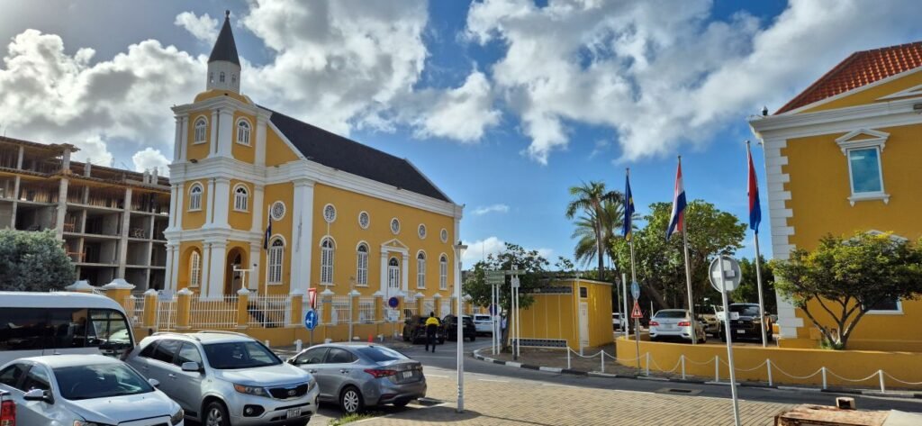 Desde allí llegamos al barrio de Punda, y nos apeamos en una plaza donde podemos ver el Templo de Emanuel, de arquitectura colonial holandesa y originalmente una sinagoga.