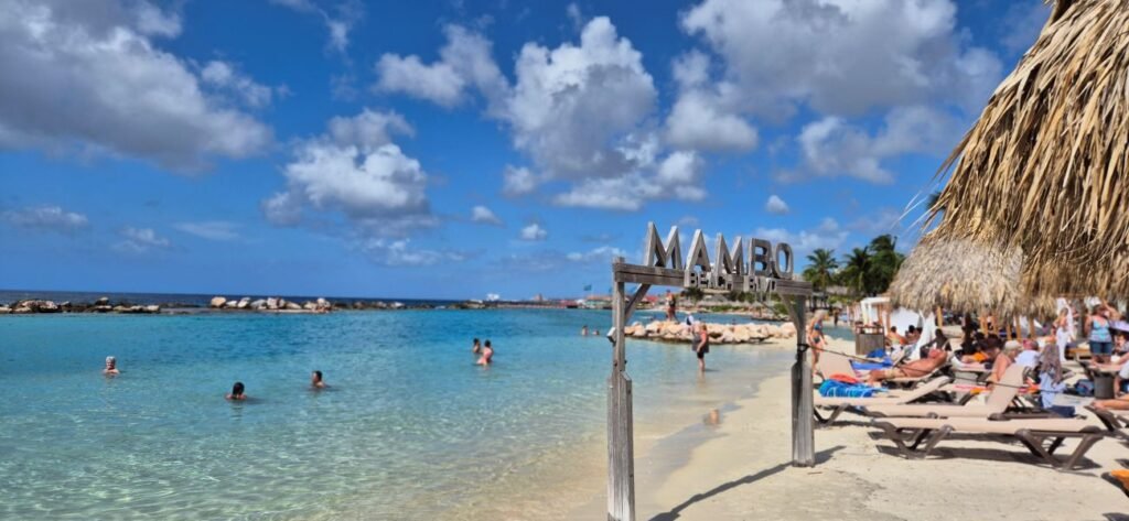 Desde allí nos dirigimos a la cercana playa de Mambo Beach, llena de cruceristas, donde nos damos un baño y paseamos por sus tiendas e instalaciones. Es una playa sin ningún tipo de interés especial que solo destaca por su masificación, era una visita prescindible.