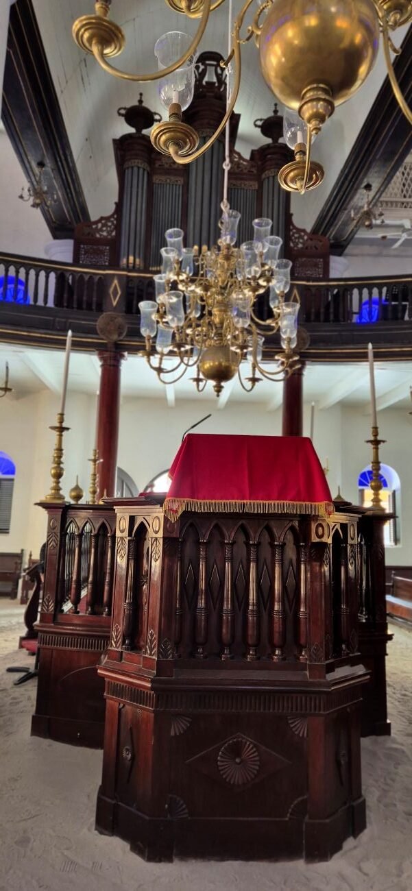 De regreso de la playa finalizamos la excursión y regresamos al barco para comer en el buffet y tras descansar un poco, volvemos a salir pasando por la zona comercial de Fort Rif, un antiguo fuerte convertido en un lugar de bares y tiendas. Pasamos nuevamente por el puente móvil para llegar a Punda y visitar la sinagoga y su museo.