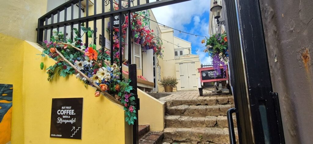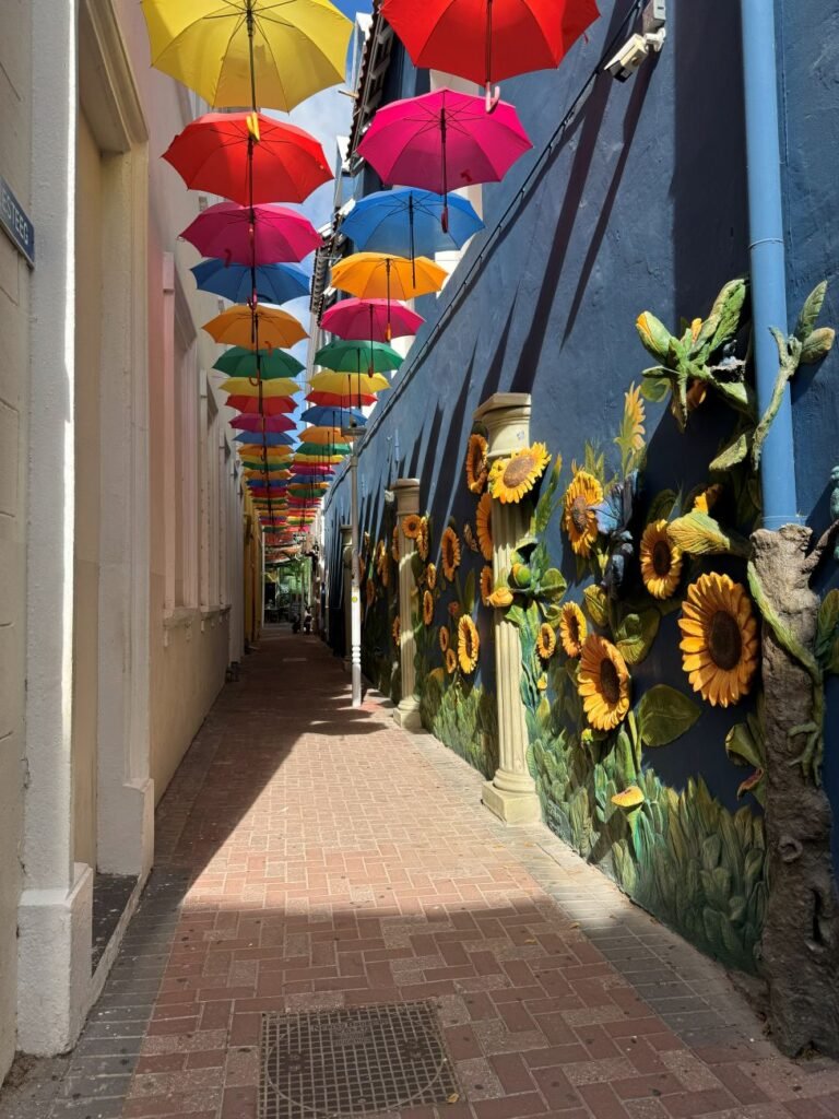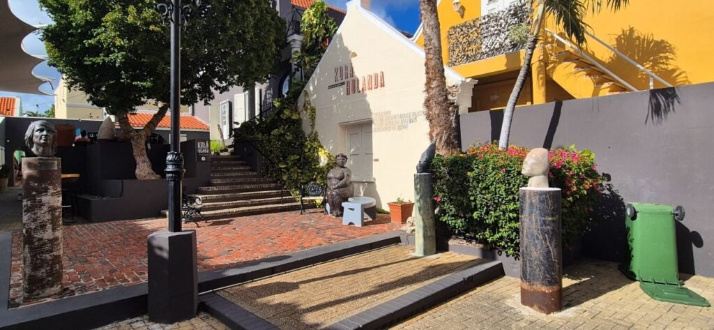 Una vez finalizada la visita nos dirigimos a una calle con numerosas tiendas de souvenirs para comprar magnetos y poder cambiar dólares en moneda local. Nos dirigimos hacia el museo Kura Hulanda de la esclavitud, pero ya había cerrado. Este museo es uno de los principales espacios para aprender sobre la esclavitud y la historia africana en el Caribe.